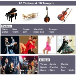 - Multifunctional Electronic Keyboard: The electronic keyboard features 6 demo songs, LED digital display and learning functions to help your kid learn better and faster. Also, it offers ten different timbres, such as piano, guitar, violin, and ten different tempos, such as rock, disco, and tango. Your kid is free to adjust the volume and speed to meet different needs.