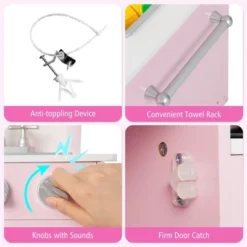 - Reliable Design & Rich Storage: Crafted from high quality materials, the kids kitchen promises to accompany kids to grow up. And the anti-toppling device is equipped for stability and safety. What’s more, the sufficient storage space holds a variety of items within reach.