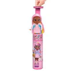 - FUN UNBOXING: Discover your doll in the cylinder portion! Twist the cylinder to see your doll strike different poses. Open to reveal her closet and accessories!