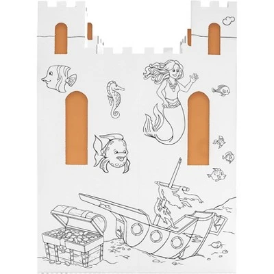- EXPLORE UNDER THE SEA – This castle creates the perfect fort, house, tent to pretend, while also acting as a great place to read stories inside for even more adventure fun. Enjoy role playing with this cardboard fort- don’t forget to invite your friends over to hunt for sunken treasure, explore the coral, or race around playing underwater tag. This can also be a great group activity for kids!
