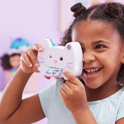 - Smile and say cheese, with this Gabby’s Dollhouse kids camera! Place the three plastic photos in the rear image panel and click, to watch a photo pop out of Kitty’s mouth!