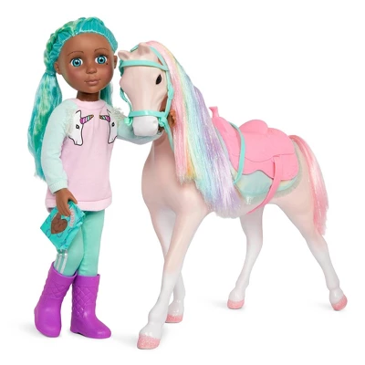 - Beautiful Toy Horse: Twinkle is a 14” horse with shimmering rainbow mane, pink tail, and fully removable saddle (dolls sold separately).