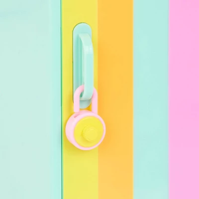 - Stylish Locker: Turquoise locker comes with a stick-on pencil holder, a lightning bolt mirror, a removable lock, stickers, a juice box, and more!