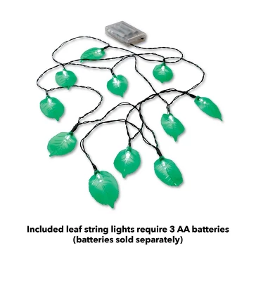 - Wreathed with LED leaf lights inside (three AA batteries required, not included)