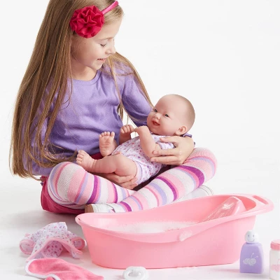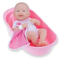 JC Toys – La Newborn | 8 piece Layette Deluxe Bathtub Gift Set | 14″ Life-Like Smiling Vinyl Newborn Doll w/ Accessories | Pink | Waterproof |Ages 2+