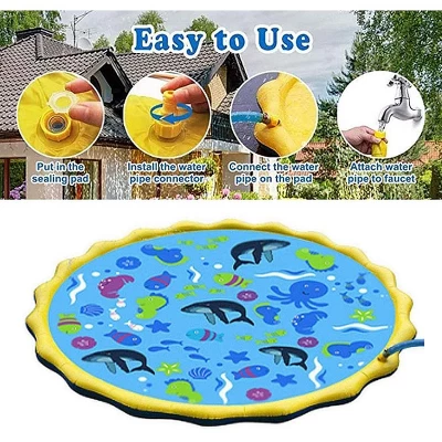 KuKu 39″ Splash Pad/Outdoor Party Sprinkler Toy/Water Toy for Toddlers/Kids Ages 4-8 – Blue/Yellow Water Sprinkler Play Mat for Kids, Sprinkler Water Toys for Toddlers, Water Spray Game Pad, Inflatable