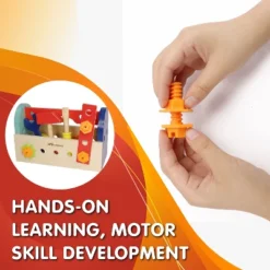 - TAKE THE WOODEN TOOLBOX EVERYWHERE: Our durable and high-quality wooden tool boxes can be taken outside, to your work, to the airport, or anywhere in the car. That means your kid can have fun and play with their hands-on items, anywhere you go. Best of all, these wooden pieces wont break or fall apart like plastic does.