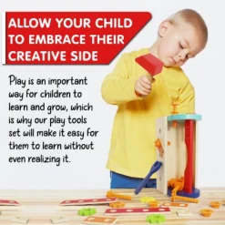 PRODUCT DESCRIPTION: Watch your child embrace their builder side. This is a great way for kids to mimic your tool kit, except with 100% premium wooden pieces so they stay safe.DEVELOPS HAND-EYE COORDINATIONHelp your children develop their hand-eye coordination with this hands-on play kit that is safe, easy to move, and durable. Using their building skills, your kid will learn more and more about themselves and their coordination, every single day.ALLOW YOUR CHILD TO EMBRACE THEIR CREATIVE SIDEPlay is an important way for children to learn and grow, which is why our play tools set will make it easy for them to learn without even realizing it. Every time they pick up the kit, their creativity will challenge them to grab different pieces, sort them, create storylines, and share them with you. FUN FOR THE WHOLE FAMILYYou can play with the different parts of our 28-piece toy baking set so that you and your children can bond. Nothing compares to those priceless memories as parents.100% PREMIUM AND DURABLE WOODOur non-toxic wood is premium and directly sourced, so our toys can withstand years of wear and tear. Now your kids can do whatever they want to the items without them cracking and breaking (like plastic does).Finally, a fun tool play kit that can keep up with toddlers.