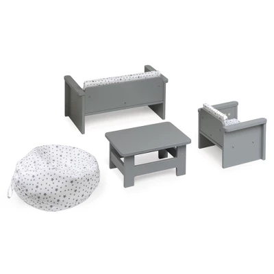 - Set includes doll couch, chair, table, and beanbag
