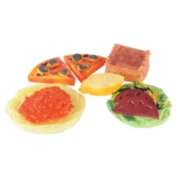 Encourage dramatic play and introduce new foods with this Life-Size Pretend Play Food Collection. Food is a wonderful way to bring people together. These sets feature a variety of popular foods that are colorfully captivating and life-size for an extra real-life feel. Children will have fun pretending to prepare and serve the meals. All pieces are made from durable, non-toxic vinyl that is easy to clean. Includes foods such as okra, fish, plantains, sushi variety, tamales, chili peppers, salsa, flan, pizza, spaghetti, salad, egg rolls, dumplings, and more!