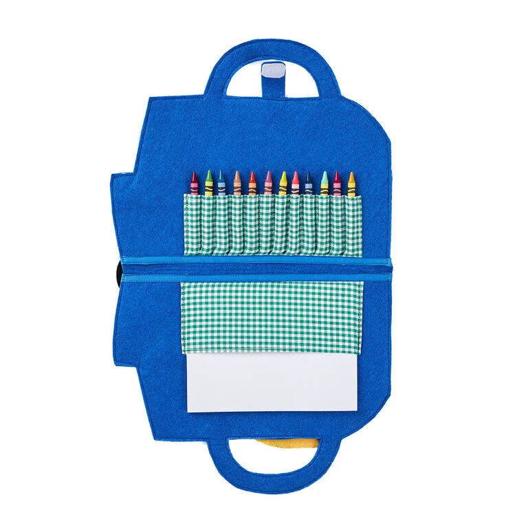 Fuel their artistic imagination with this on-the-go art case for kids. The felt folio features a cement truck on the outside and a hook-and-loop tape closure. Perfectly sized for kids to take along on car rides, errands or appointments, the soft activity case includes pockets for a drawing pad and crayons inside (both included).