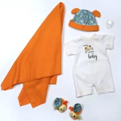 Artist: Pat MoultonSize: 19 Head to ToeMaterial: SoftTouch Vinyl3/4 vinyl arms and legsMedium skin toneBrown eyesComes with an off-white play romper, teal puppy print cap with dog ears, puppy booties, blanket, and a magnetic pacifier.Arrives with the new and improved PG cloth bodyRooted brown hairDoll weight: 2.8 lbsShipping weight: 4.5 lbsBPA-freeIntended for Reborn Doll Collectors age 3+ Puppies in the photos NOT includedYour heart will go pit-a-pat as you set eyes on Puppy Love. This sweet little bundle of joy has a knack for getting all affection with his/her irresistible baby face and brown puppy eyes. Cuddle this baby tightly in your arms and prepare for a lasting paw mark in your heart. Let the snuggles and treats begin as you take home Puppy Love! This gender-neutral doll is outfitted in an off-white play romper with yellow stitching and a custom imprint that reads, Every Puppy needs a Baby partnered with oh-so-adorable puppy booties. Take off Puppy Loves puppy print cap with orange dog ears to reveal his/her supple rooted brown hair. At night, wrap this baby in his/her ultra-soft orange fleece blanket with the included magnetic pacifier for the best sleep ever. Paradise Galleries Puppy Love is a debut sculpt by world-renowned artist Pat Moulton. This realistic gender-neutral toddler doll is 19 inches from head to toe, crafted from SoftTouch Vinyl with a weighted cloth body for that wonderfully lifelike feel with a fresh baby powder scent. Arriving in our new eco-friendly Collectors Box along with a numbered Certificate of Authenticity with the artists signature. Intended for reborn doll collectors aged 3+.Fill your home with Puppy Love and Furever Babies Collection! Furever Babies are 9.5-inch reborn puppies made from premium flocked vinyl by internationally recognized artist Ping Lau. Browse our collection of reborn doll accessories, including our popular Reborn Doll Diapers and customer-favorite Baby Doll Magic Bottles! Our doll accessories are perfect for bonding with your baby doll or completing your Paradise Galleries gift set.