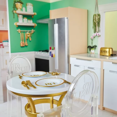 - WHAT’S INCLUDED- All the Art Student housing essentials such as, Iconic fashion clothing rack, colorful hangers, clear trunks for storage, 50+ Accessories like – Makeup Palette, Laptop, Coffee Cups, Water Bottles, Silverware, Plates, Toaster & so much more. Furniture includes. Hot Tub, Refrigerator, Stove, Sink, Washer, Dining Table, Chairs, Stool, Counter, Bathtub, Bath Sink, Toilette, Couch, Bed, End tables and more. Recreate all your favorite scenes at home! Dolls Sold Separately.