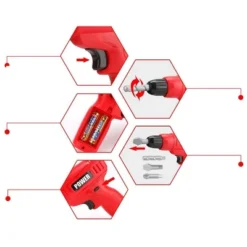 A child-size power drill for your kids with interchangeable drill bits. Has realistic drilling sounds and motion. It can retract as well. It is a great toy for a child who loves tools and also for kids that like to copy their dads! Our cool power tool mini toy drill is fully functional and realistic! Powered by 2 x AA batteries — not included