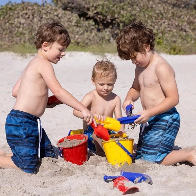 2.5 liter bucket is soft, yet indestructible and comes with measuring scale inside. One bucket included. Colors vary. Made of ABS plastics, Spielstabil sand toys are quite bendable which is great for gentle process of transforming buckets of sand into a giant towering castle. The soft plastic shovels are strong enough to scoop up the sand but won’t hurt little hands in the process. Spielstabil Toys have a great reputation in Europe. Our sand toys are widely used in German Kindergarten (daycare and pre-schools). All their edges are rounded, handles are designed for children’s hands, the shovels handles are child sized, and protect the hand when digging. Watering Can’s have big openings so hands can’t get stuck. You will really feel the difference having these quality toys in your hands while sharing precious play time at the beach.