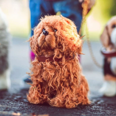 - Comes in a kennel shaped box. Labradoodle is 5″L x 6″H x 3″W.